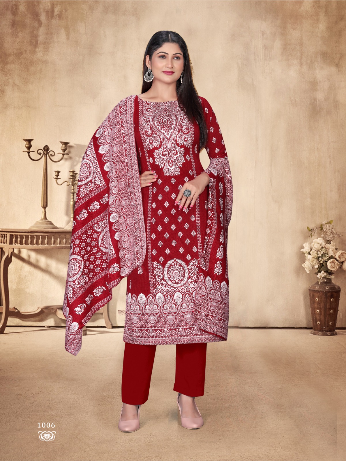 Vastraas Women’s Foil Printed Suit Set with Pant Contrast Shawl-Elegant Winter Wear